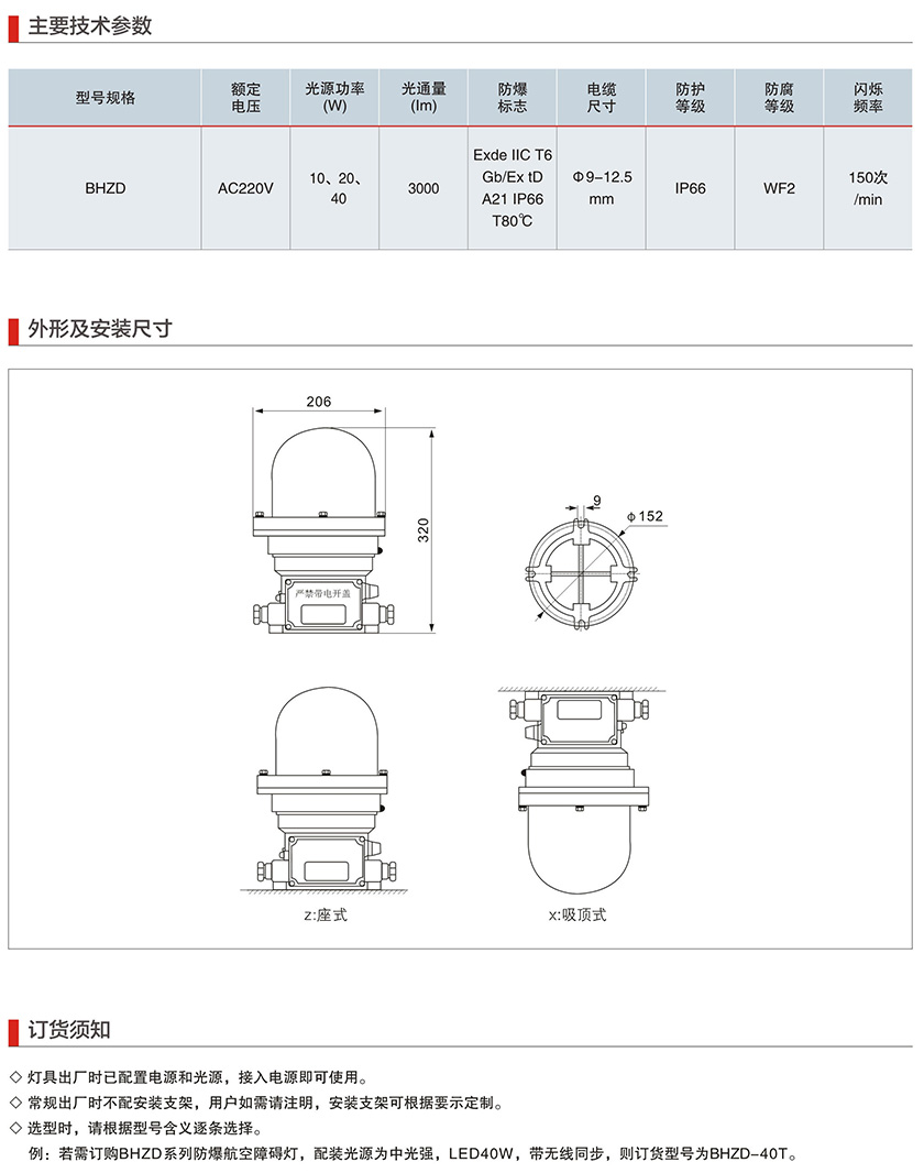 产品中心 厂用防爆灯具系列 BHZD系列防爆航空障碍灯(IIC)