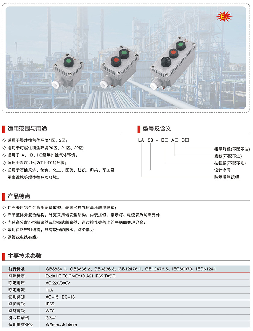 产品中心 防爆电器系列 LA53系列防爆控制按钮(IIC、Ex tD)