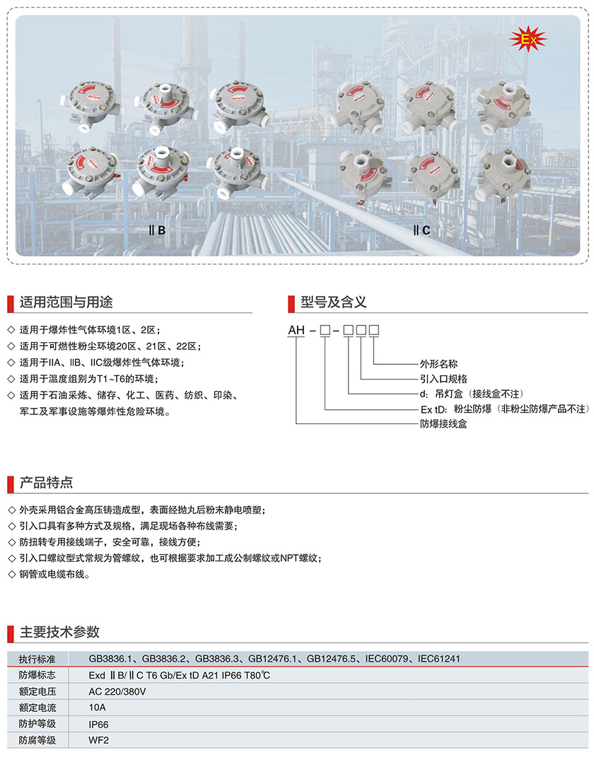 产品中心 防爆管件系列 AH系列防爆接线盒(IIB、IIC、Ex tD)