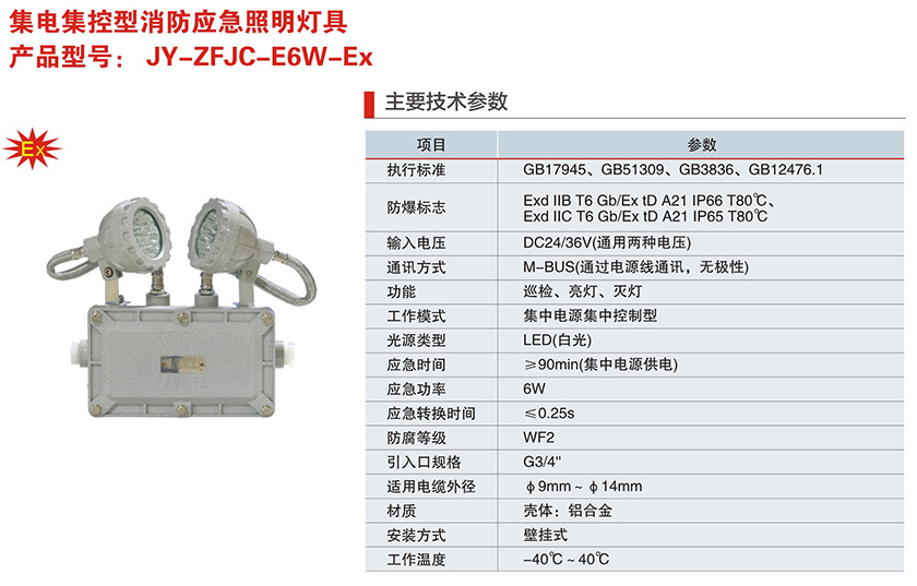 产品中心 防爆消防应急类 JY-ZFJC-E6W-Ex系列集电集控型消防应急照明灯具